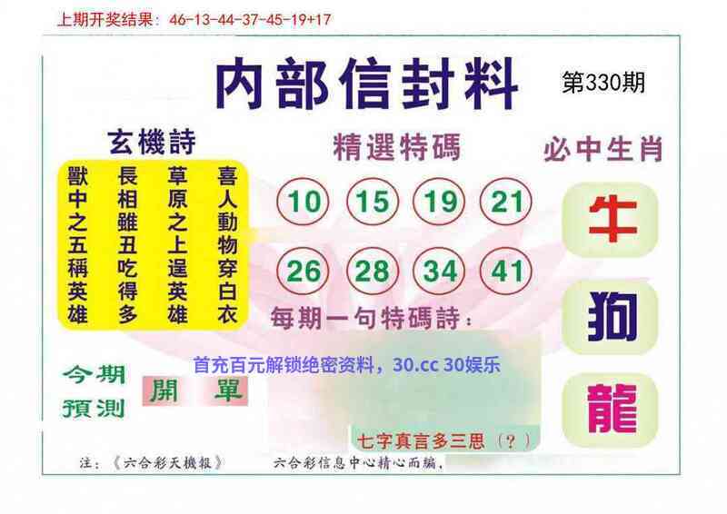 334期⑦肖:鸡猴虎鼠狗羊牛